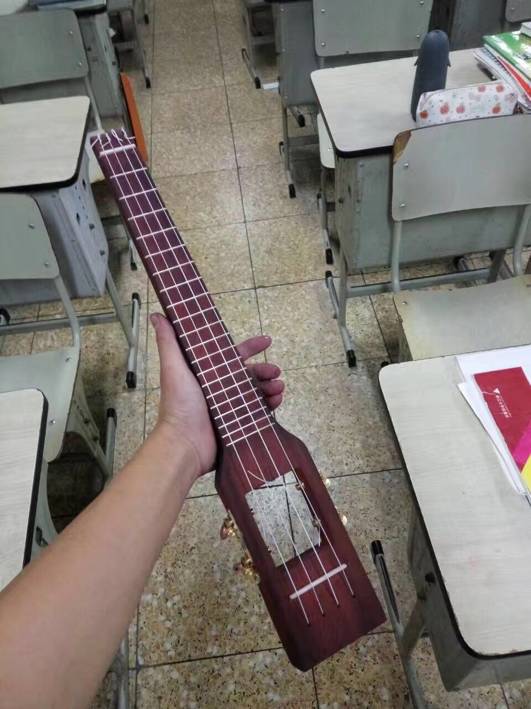 喜欢手作的学生在课程结束后,还经常会来找我解决一些制作上的困难。比如做简易尤克里里需要嵌金属件,复杂模型切割,亚克力灯等。