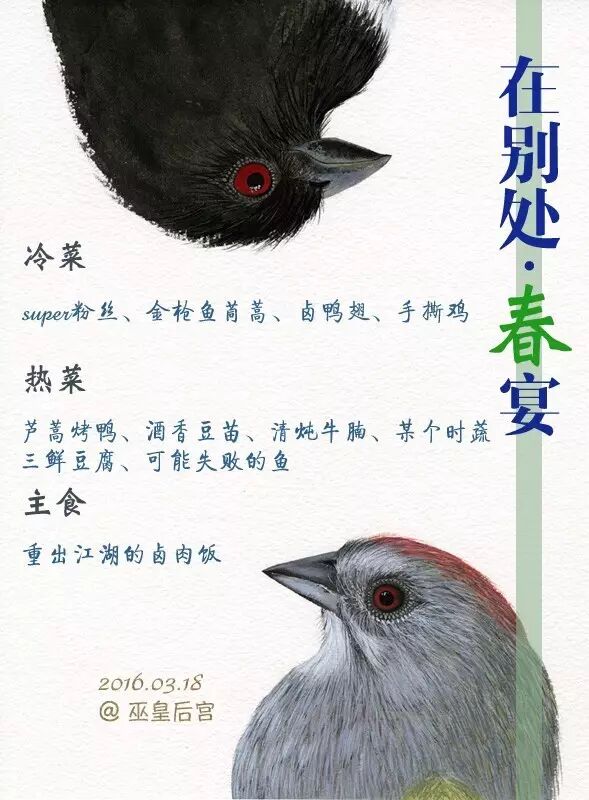 中国人的吃,带着一种强烈的仪式感。作为一名天秤座的文艺女青年,我还会为我每一次的家宴起一个主题,做一张海报,微信递出邀请函。每一次,我都会提前列好当日菜谱,手写下来,冷菜、主菜、热菜、汤、主食、甜品、饮料一一罗列。再带着这张单子出门采购。微火炖一夜的汤,一些食材做腌制,不至于临上场时手忙脚乱。最终用好看的器皿,铺张一桌子的菜,盛待朋友们。嗯,大家来我家吃饭,从来不会担心肉不够吃的问题。